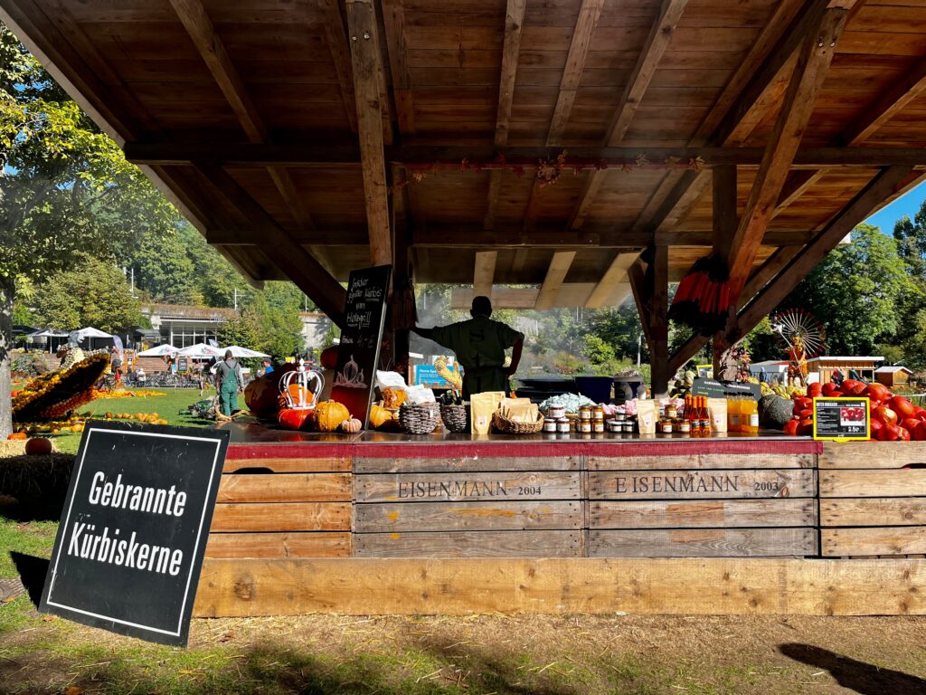 Roasted pumpkin seeds, jams, fruit spreads, as well as pumpkin seeds to grow your own pumpkins are sold in the shops. The flavored pumpkin seeds were absolutely amazing, I left with 3 bags!
