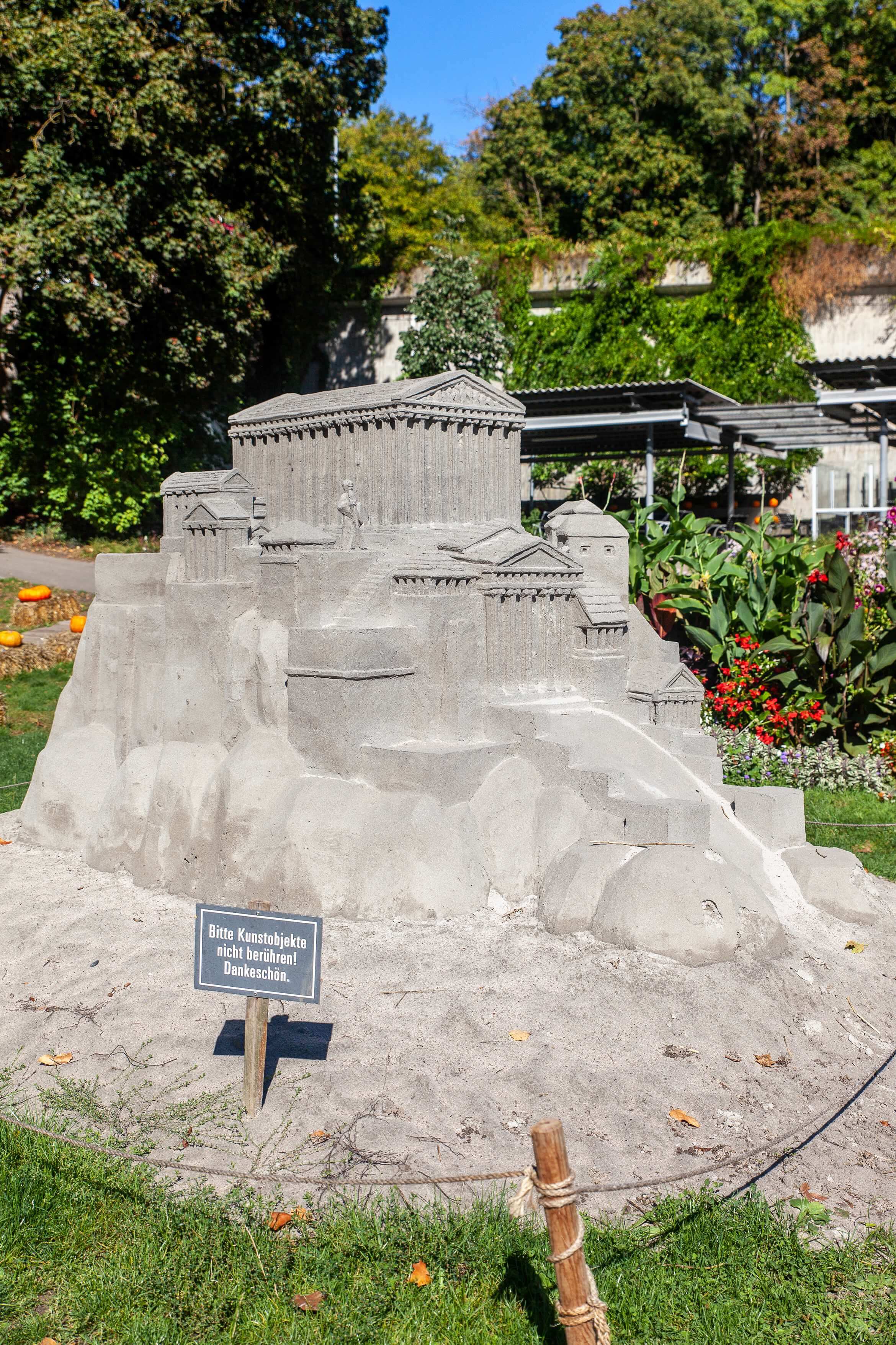 The sculptures are actually done prior to when the pumpkin festival starts. From May until August, the Ludwigsburg Palace Gardens hosts sand carvers from all over to build their masterpieces.
