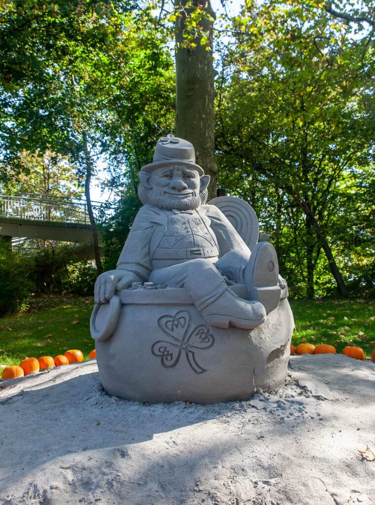 Nestled among the sea of pumpkins, these massive works of art are meticulously crafted by professional sand sculptors and often tie into its own theme. What’s especially fascinating is that these sculptures are constructed without any internal supports—just sand and water, compacted and carved over the course of several days.