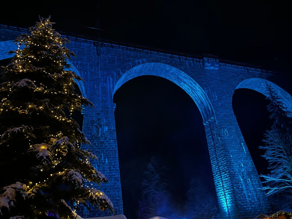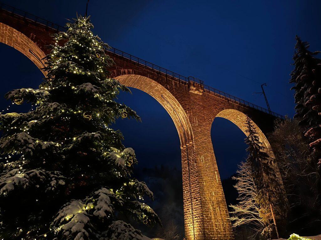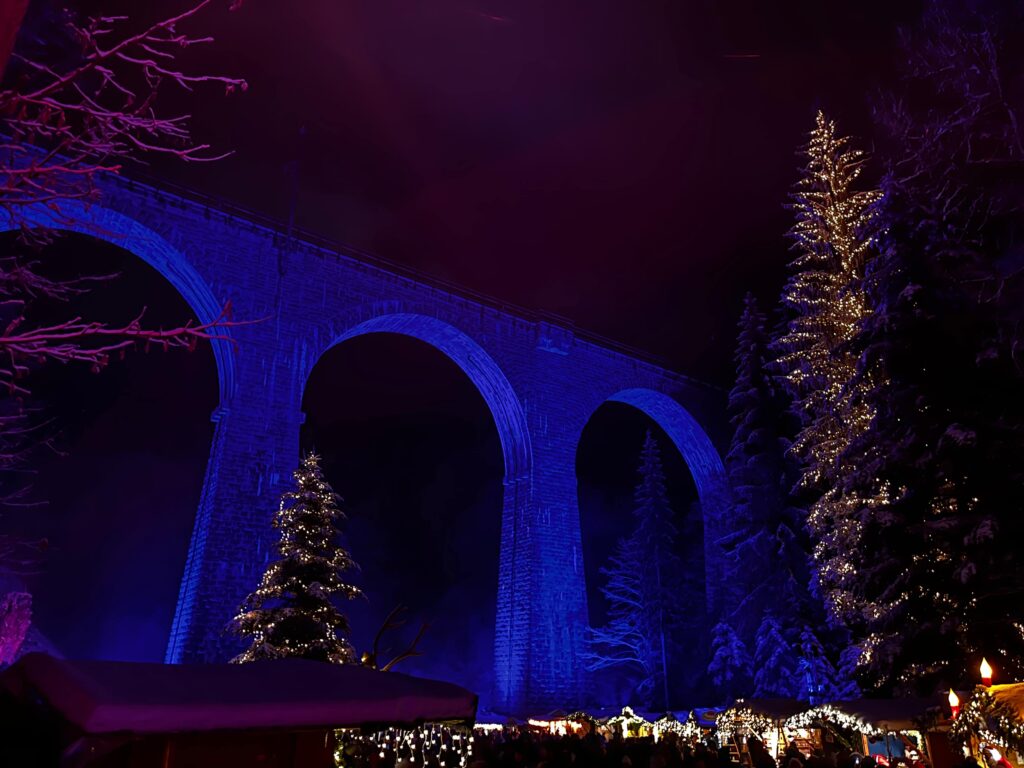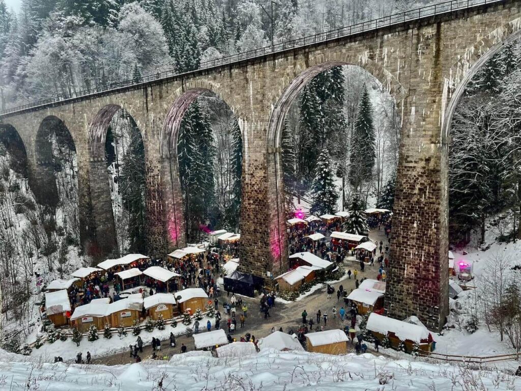 Also known as Ravennaschlucht Weihnachtenmarkt, it’s known for its unique location. The market is located under the 40-meter high Höllental Railway Viaduct, which frames the market beautifully.