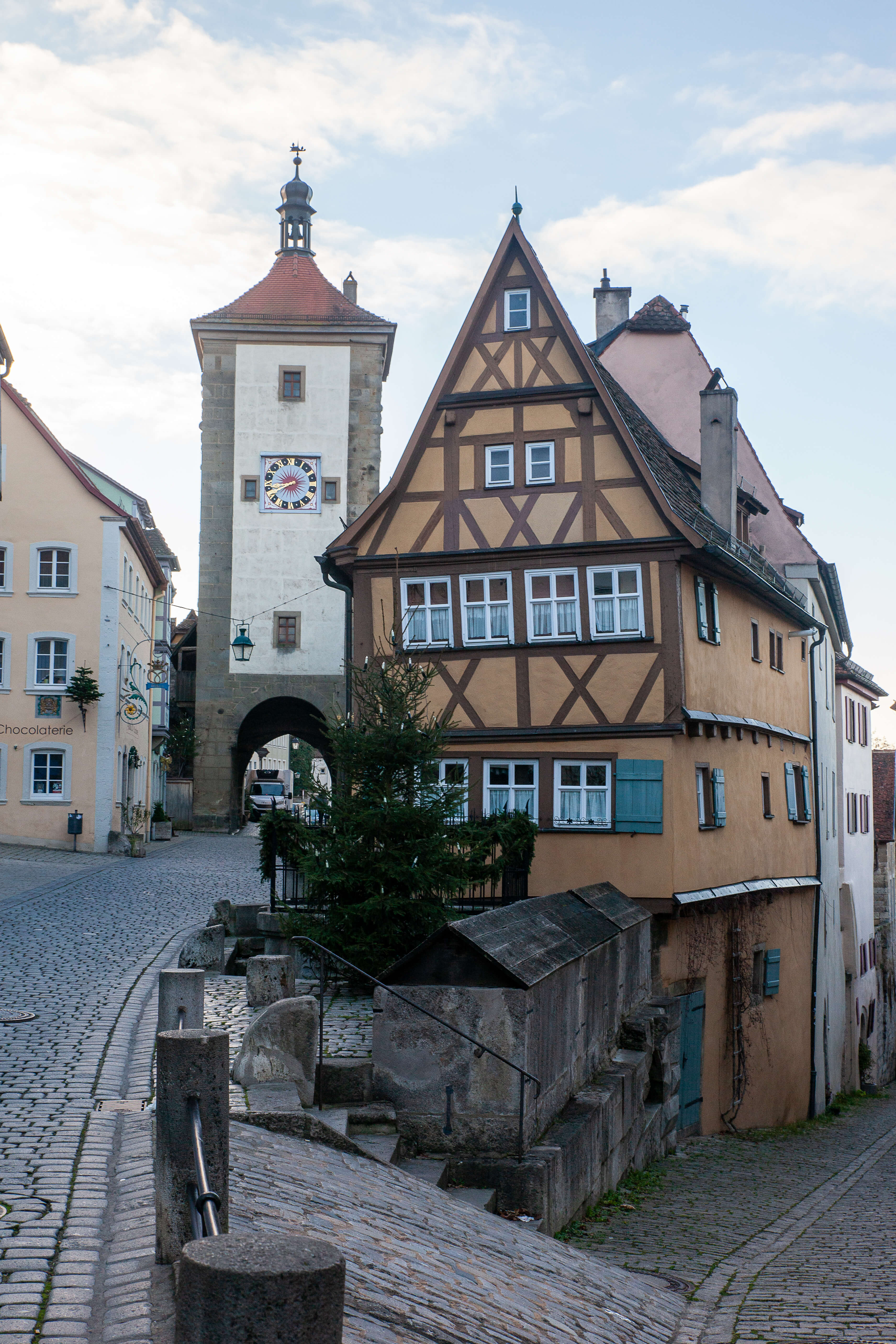 Arguably the most photographed spot in Rothenburg, the Plönlein is the picture-perfect fork in the road flanked by a tilted yellow house, the Sieber Tower (Siebersturm) to the left, and Kobolzell Gate (Kobolzeller Tor) down the hill.