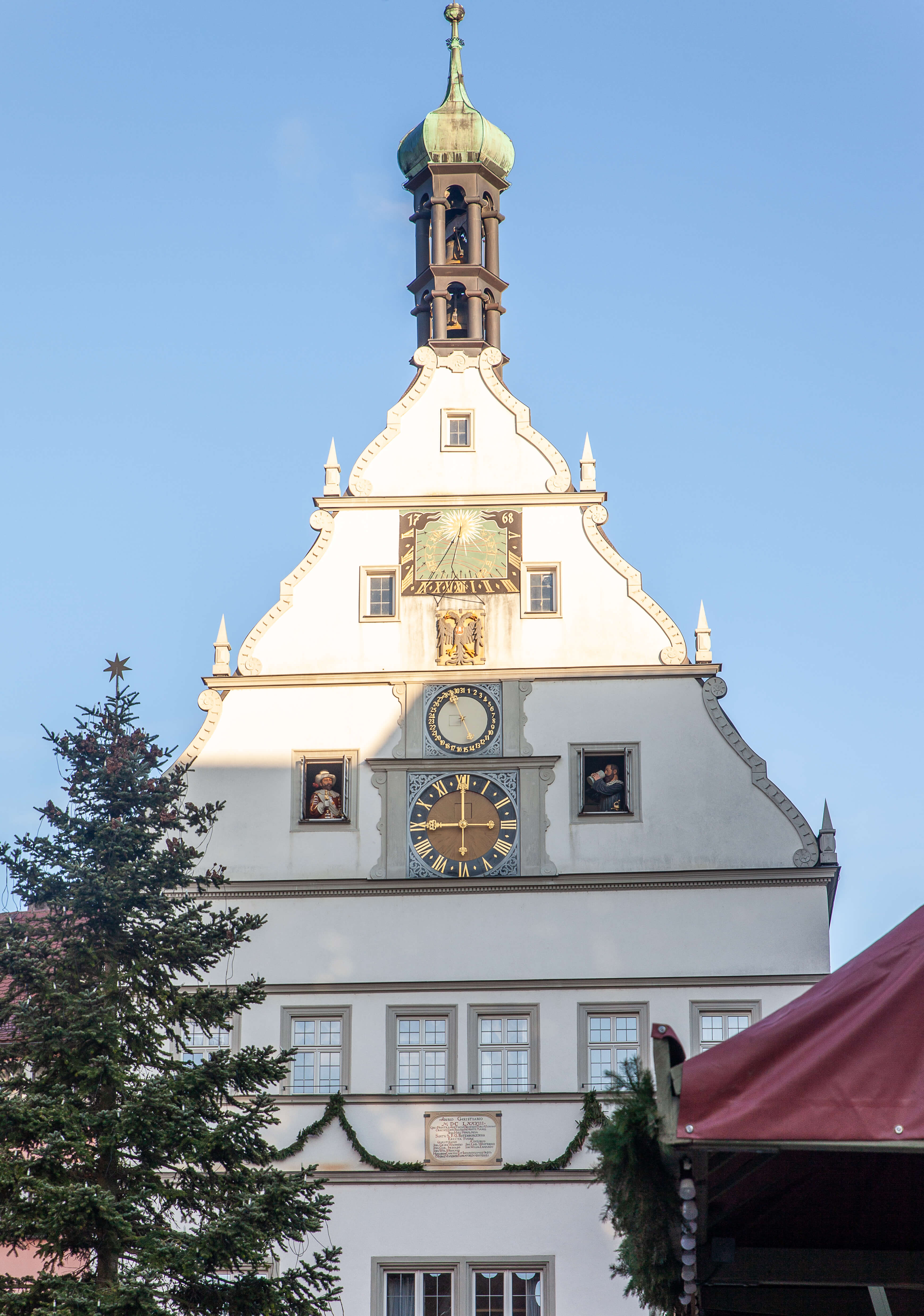 Surrounded by pastel-colored buildings, the impressive Gothic and Renaissance Town Hall, Tourist Information Centre, and the quaint Councilor’s Tavern (Ratstrinkstube) with its moving clock show, the square feels like a stage set from another century.