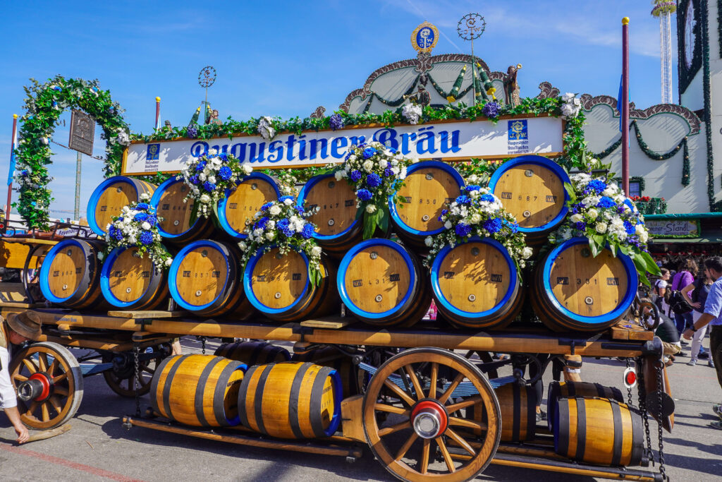 The parade of the Oktoberfest Landlords and Breweries happens on the first Saturday at 10:45 am, where the beer tent owners take the beer to the Theresienwiese.